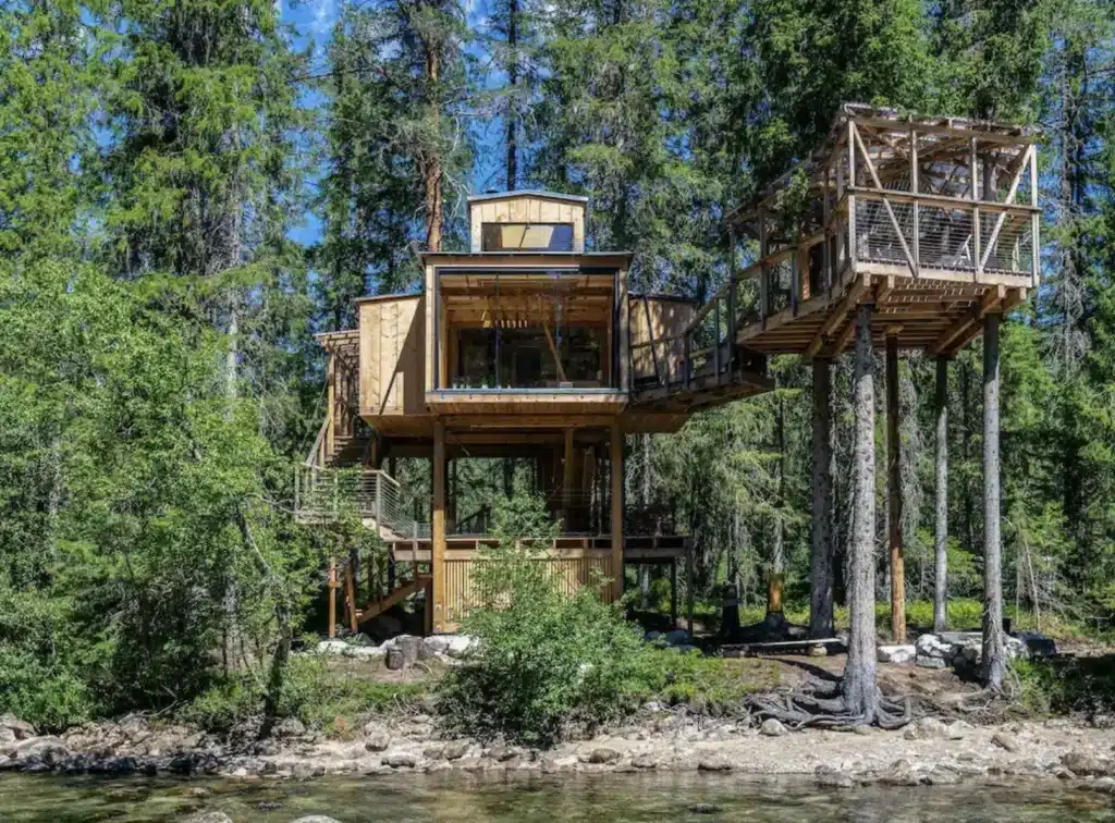 A treehouse Airbnb over a river in Norway.